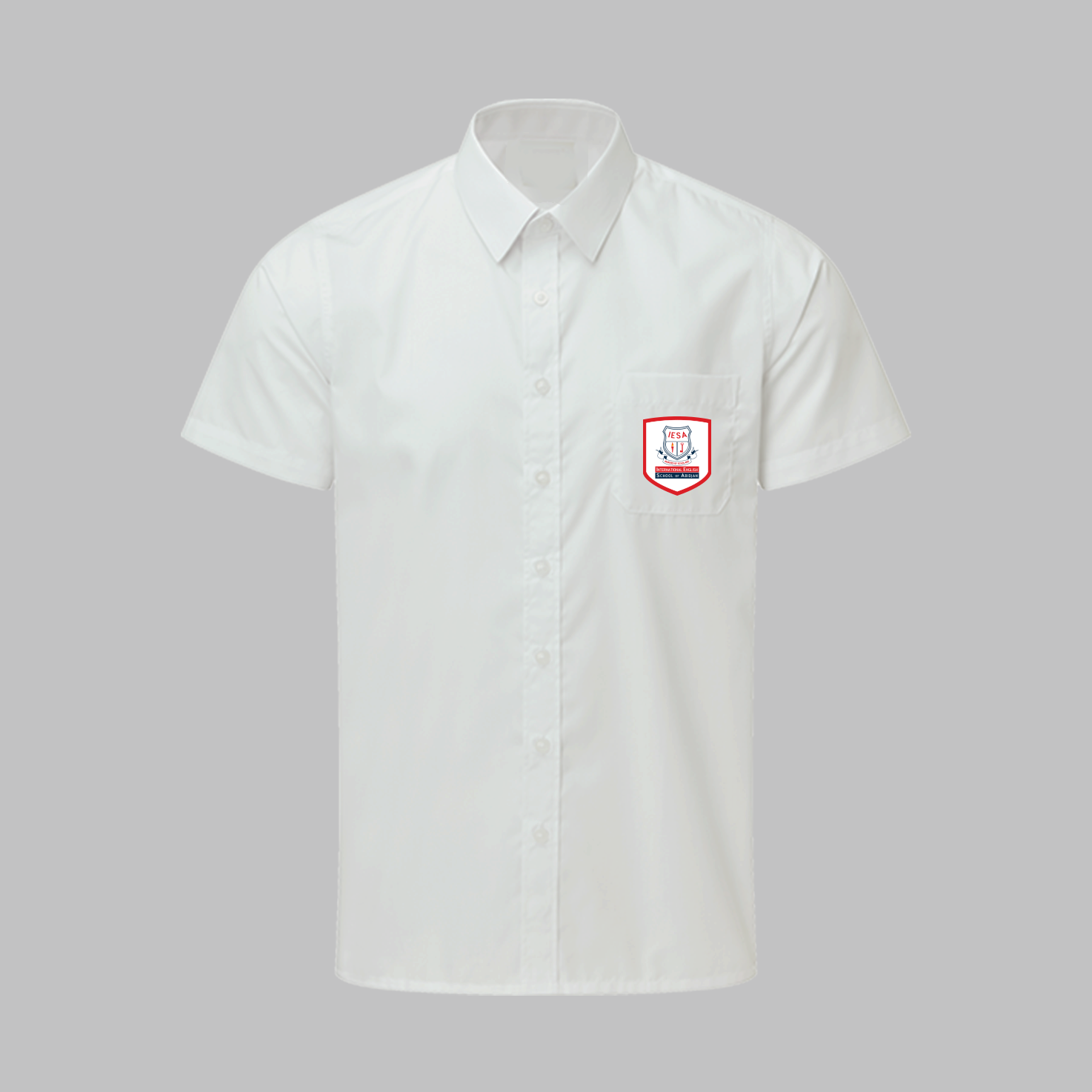 Beige cream Short sleeve 1 Chest pocket Embroidered High school crest on the pocket Button fastenings left facing Standard point collar with a top button fastening