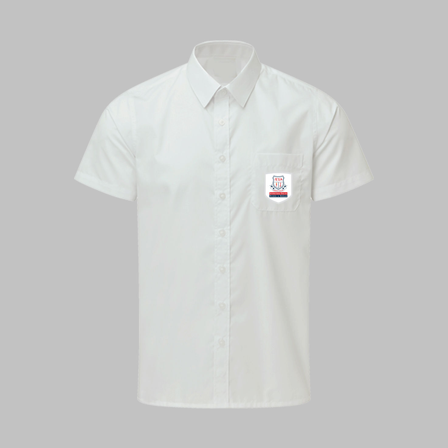 Beige cream Short sleeve 1 Chest pocket Embroidered High school crest on the pocket Button fastenings left facing Standard point collar with a top button fastening